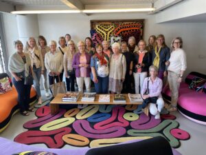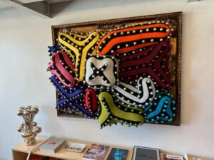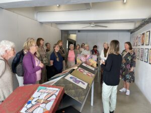 Den 22 mars bjöd SWEA Konst in till visning av konstnären Joana Vasconcelos ateljé, inhyst i ett f.d. magasin vid floden Tejo i Alcântara. Joana Vasconcelos är en mycket uppmärksammad konstnär som skapar fantasifulla gigantiska verk i textil och också monumentala skulpturer av alldagliga ting. Hennes utställningar har rönt stor succé och vid två tillfällen har hon respresenterat Portugal på Biennalen i Venedig. Som yngsta och enda kvinnliga konstnär blev Joana inbjuden att ställa ut på slottet i Versailles, en dundersuccé med 1,6 miljoner besökare! Hon är även den första portugisiska konstnär som ställt ut på muséet Guggenheim i Bilbao! 20 entusiastiska Sweor guidades runt i ateljéns stora och mindre salar bland pågående projekt, väggskulpturer, färdiga verk, modeller, skissböcker och foton. Joanas konstverk innehåller samhällskritik, hon vill belysa kvinnans ställning, klasskillnader och nationell identitet, vilket hon gör med ironi och humor! Vi hade turen att få en glimt av konstnären i ateljén, hon “hejade” glatt på SWEorna som efter en lyckad visning nöjda och glada sjönk ner i de franska sofforna av märket “Roche Bobois”, med design av Joana Vasconcelos!